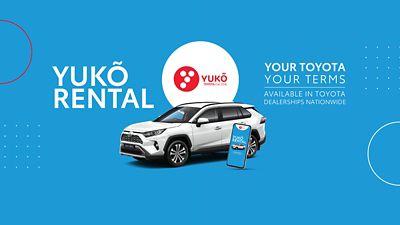 YUKÕ Rental offers you a Toyota on your terms from all Toyota Dealerships nationwide. Rent by the day, week or month with insurance included. No contracts, no commitments or hidden charges. Enjoy a completely digital booking experience.